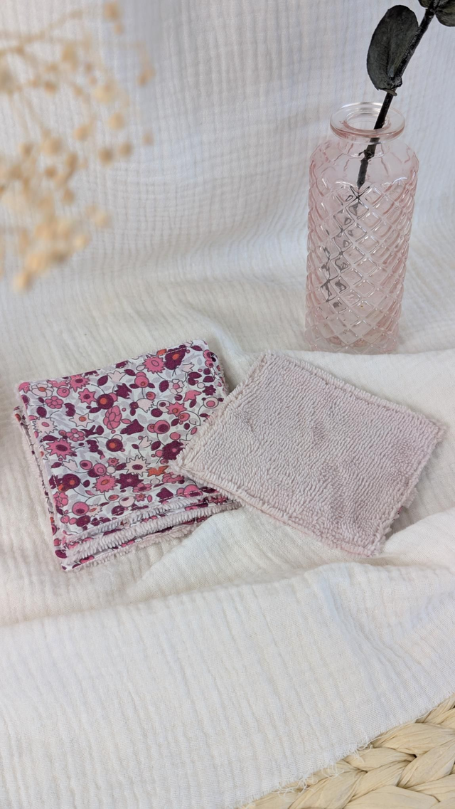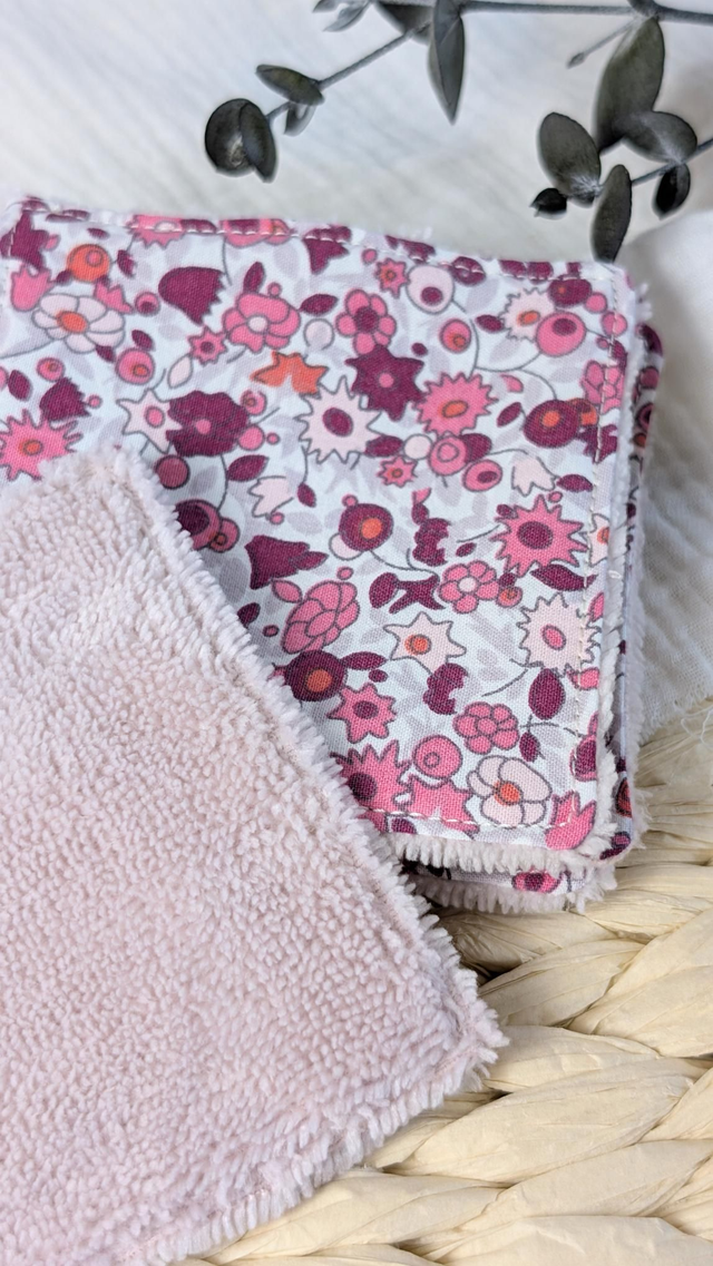 Lingettes démaquillantes lavables - Collection "Baby Flower", + bambou rose poudré, le lot de 5