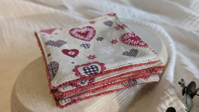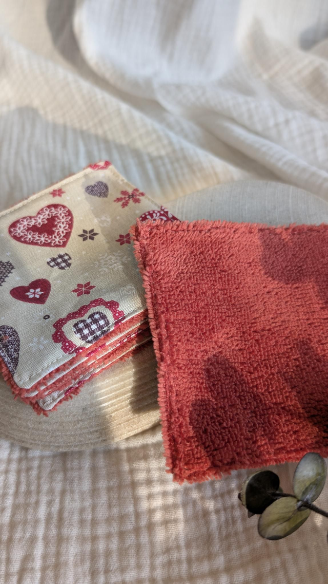 Lingettes démaquillantes lavables - Collection "Cœurs d'Alsace", + bambou terracotta, le lot de 5
