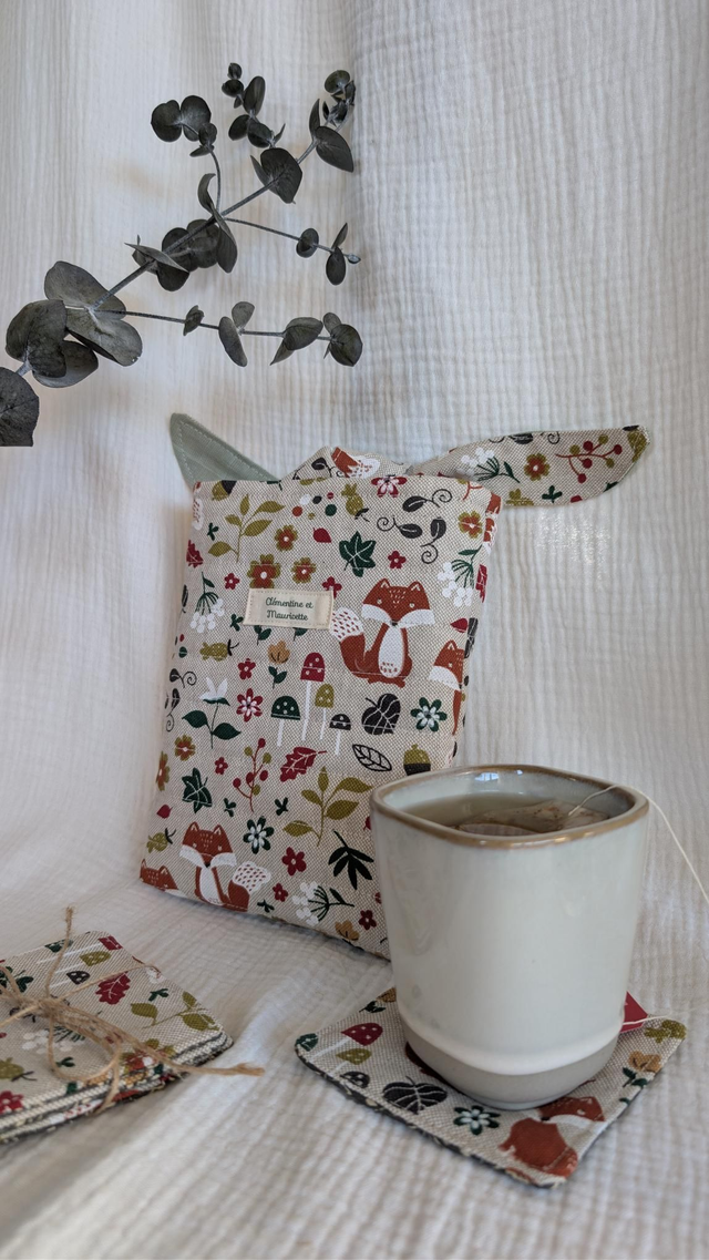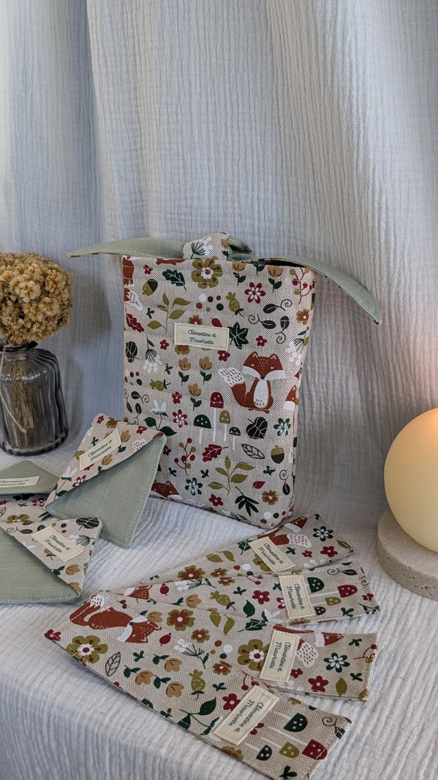 Marque-page "coin" - Collection tissu "Renard"/Vert d'eau 2
