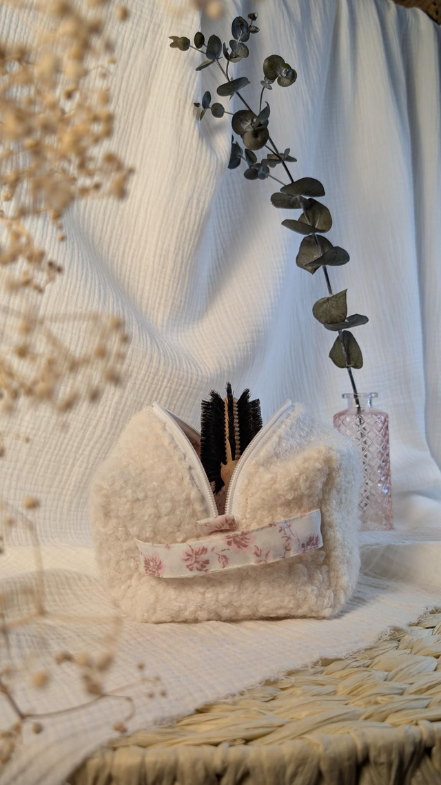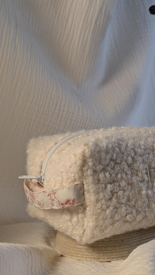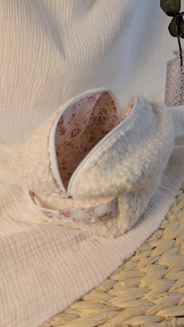 Trousse matelassée moelleuse et cocooning : toute douce et molletonnée à l'extérieur "Comme un Doudou"🐑, elle cache un cœur délicat "Rose d'autrefois" 🌸...
