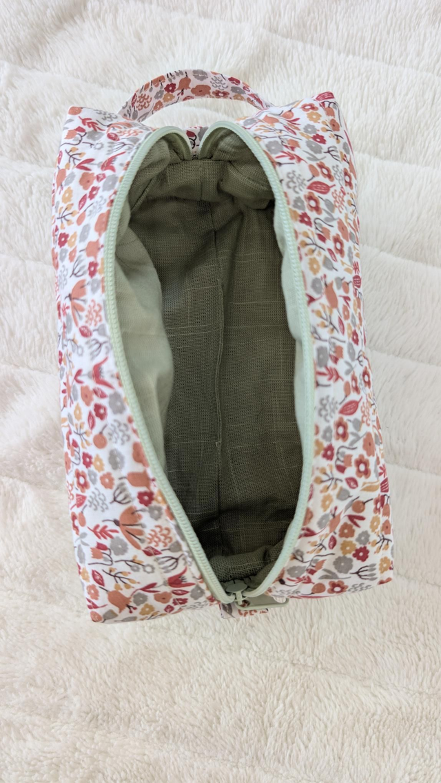 Une trousse matelassée 🌸toute fleurie🌸, pour ranger vos produits de soin ou vos accessoires préférés ! Pratique, avec sa poignée de transport !